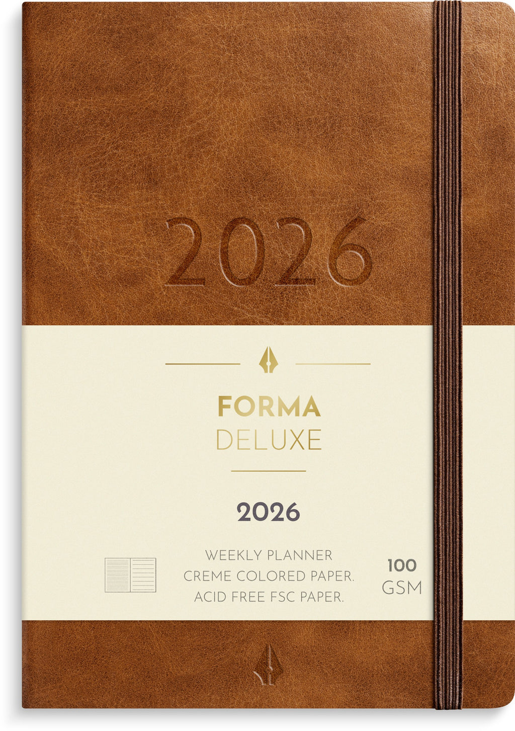 En stilren og eksklusiv kalender med fokus på tydelig planlægning. En klassisk kalender med cremefarvet papir med en uge pr. opslag. Bagerst er der ekstra sider til noteringer og en letoverskuelig årsplanner.