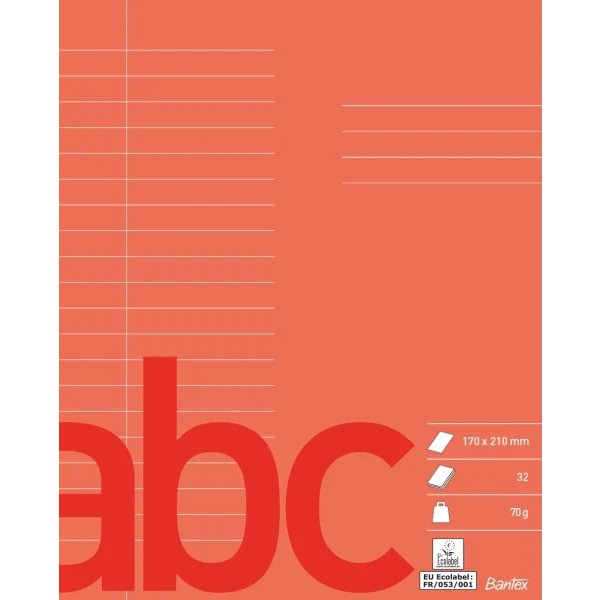 Bantex - Skolehæfte, A5, Linjeret, 32 sider, 70 gram - Rød