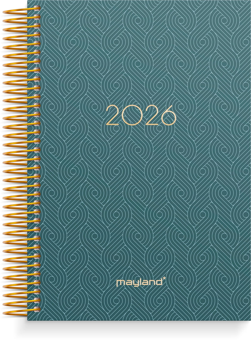 Moderne spiralkalender. Kalenderen er spiralbundet med et illustrativt omslag i soft touch, hvilket giver kalenderen et lækkert og moderne udseende. Kalenderen er inddelt med en dag pr. side og indeholder et kalenderskema med halvtimeinddeling fra kl. 8-20, så du nemt kan danne dig et overblik over dagens planer og aftaler. Dertil finder en udfoldelig årsoversigt, masser af skriveplads, praktiske informationer samt hjørneperforering og månedsregister, som sikrer hurtige opslag i kalenderen.
