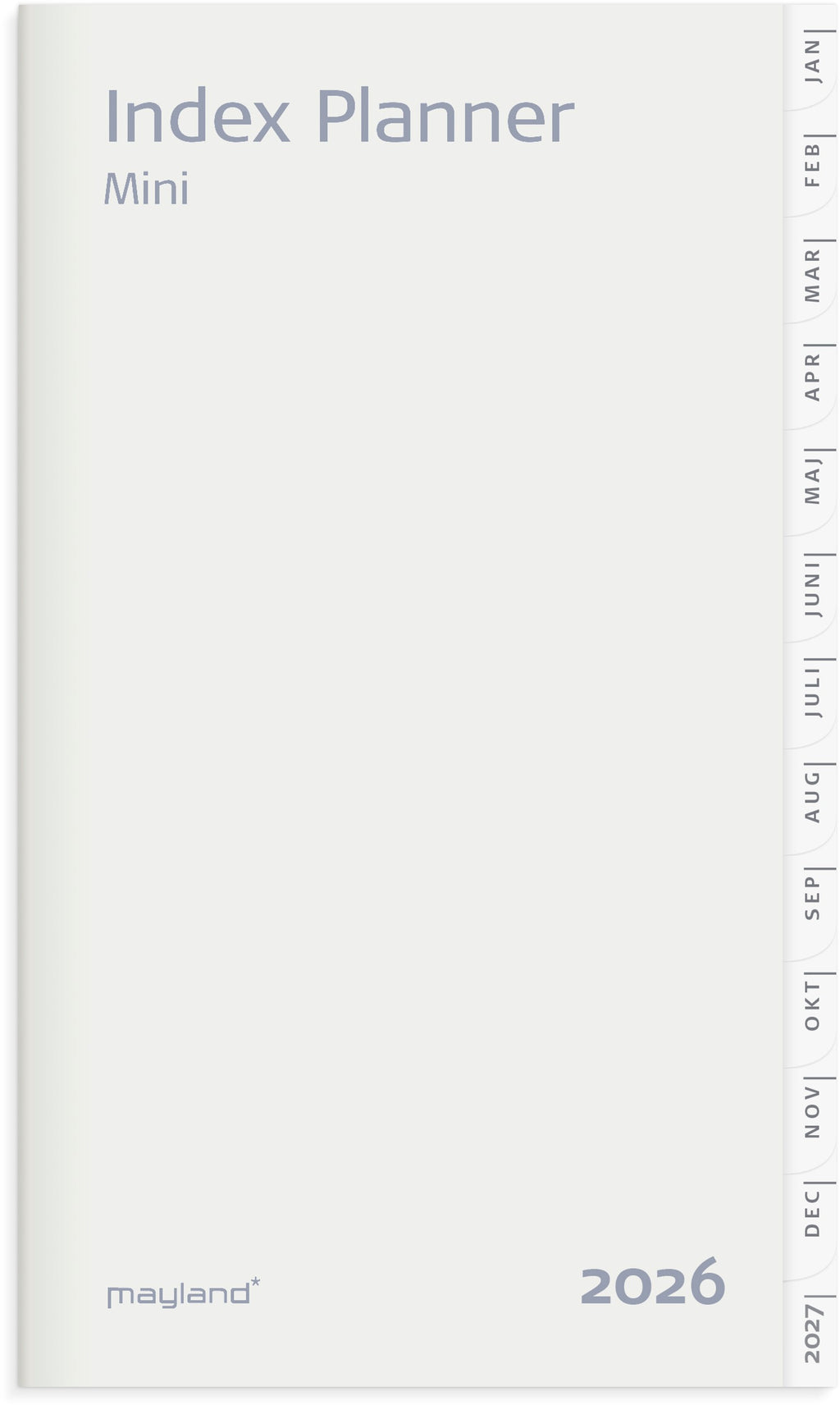 Refill til din mini index planner. Kalender-refillen er inddelt med en måned pr. opslag og indeholder et timeopdelt kalenderskema fra kl. 8-18, så du får et godt overblik over hele månedens aftaler og aktiviteter.