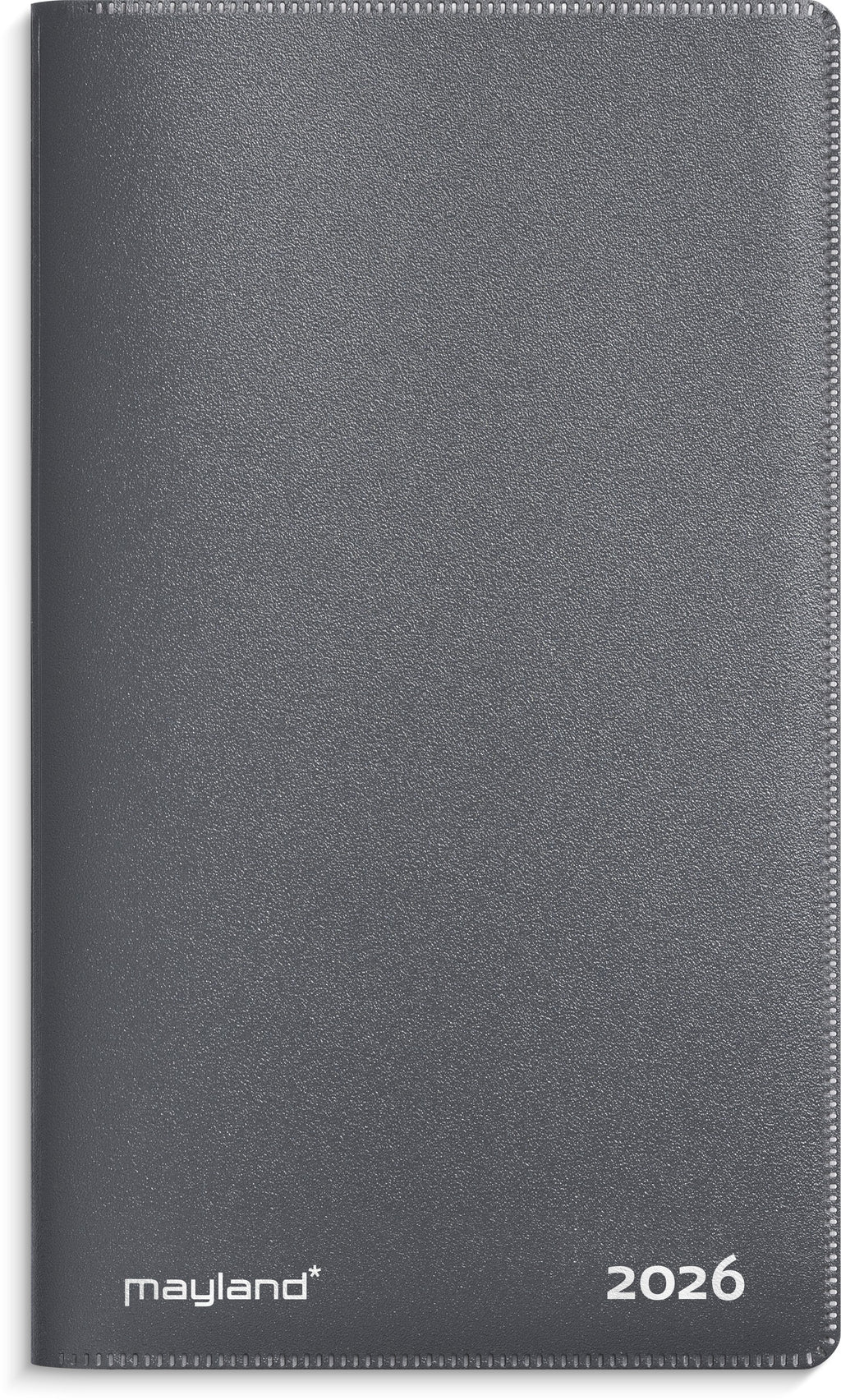 Mini planlægningskalender. Kalenderen er indbundet med et omslag i mørkegråt PP-plast, hvilket gør den stærk over for slid. Den lille, smarte planner er inddelt med en måned pr. opslag og indeholder et timeopdelt kalenderskema fra kl. 8-18, så du får et godt overblik over hele månedens aftaler og aktiviteter. Dertil finder du et udstanset månedsregister samt en adresseliste.
