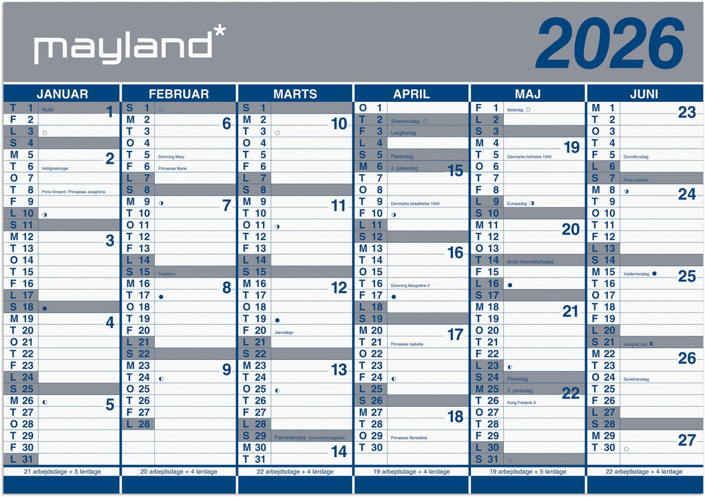Vendbar kæmpekalender 70x100 cm i kraftigt papir med 2x6 månedsoversigt (i plastpose). Vægkalenderen giver dig en oversigt med 6 måneder ad gangen, så du hurtigt og nemt kan skabe et godt og overskueligt overblik over året og alle dets aktiviteter. Dette varenr. er identisk med xx064000 i paprør.