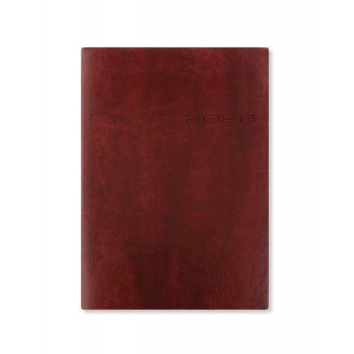 Stilren A5-dagbog med ugeopslag, der giver et klart overblik over ugen. Dagbogen har omslag i kunstlæder, farvede papirkanter og en matchende sidemarkør. Indersiderne er trykt på 70 g/m² cremefarvet papir fra bæredygtige kilder.