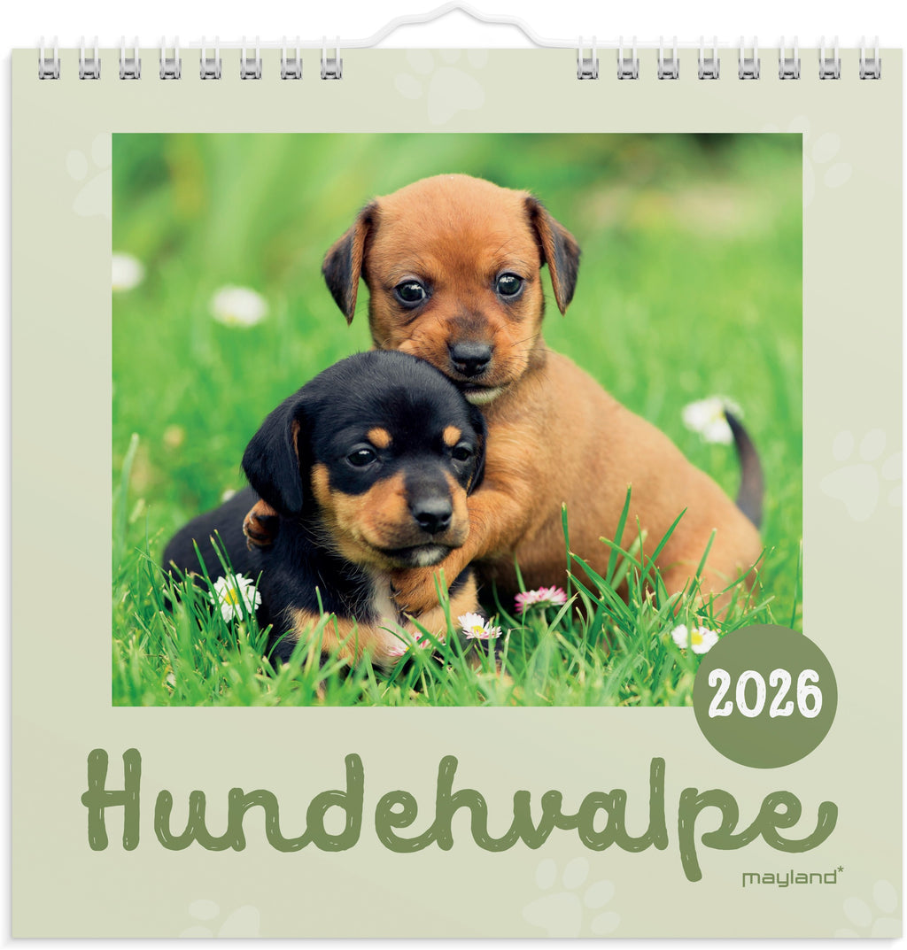 Vægkalender i karton med søde billeder af hundehvalpe. Kalenderen er spiralindbundet og giver dig en oversigt over 1 måned ad gangen med plads til noteringer, så du hurtigt og nemt kan skabe et godt overblik over den enkelte måned.